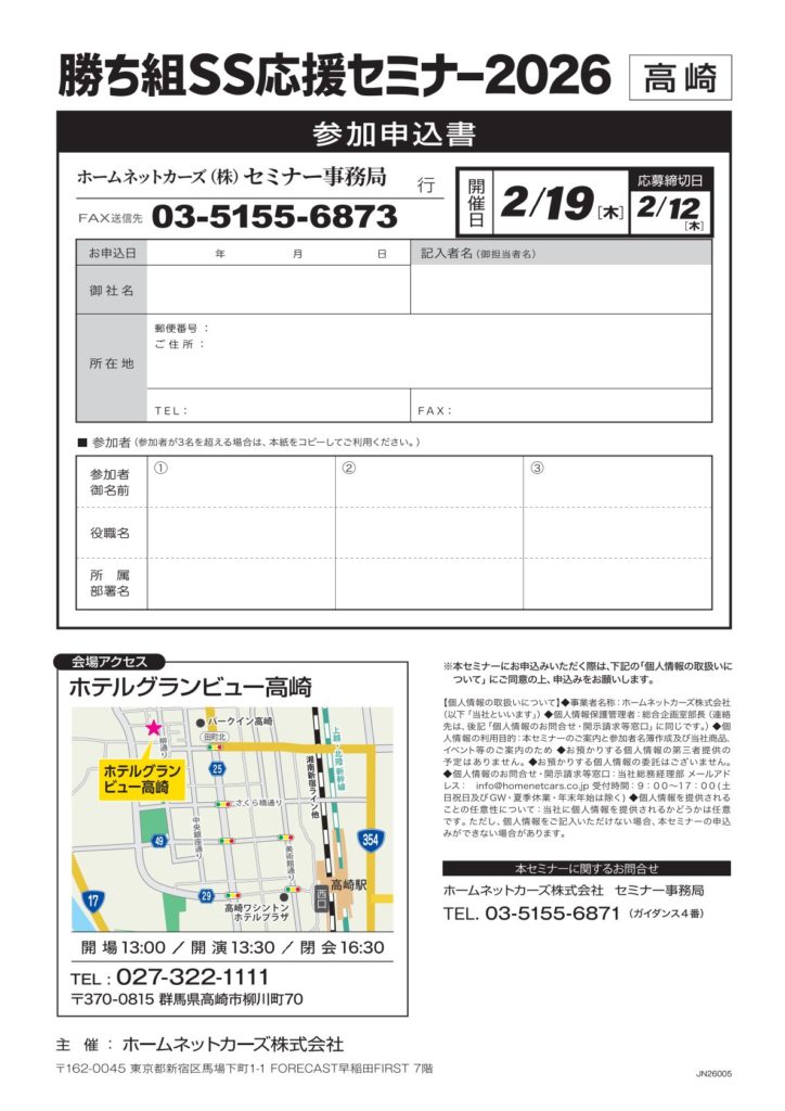 2/19開催:勝ち組SS応援セミナー2026in高崎